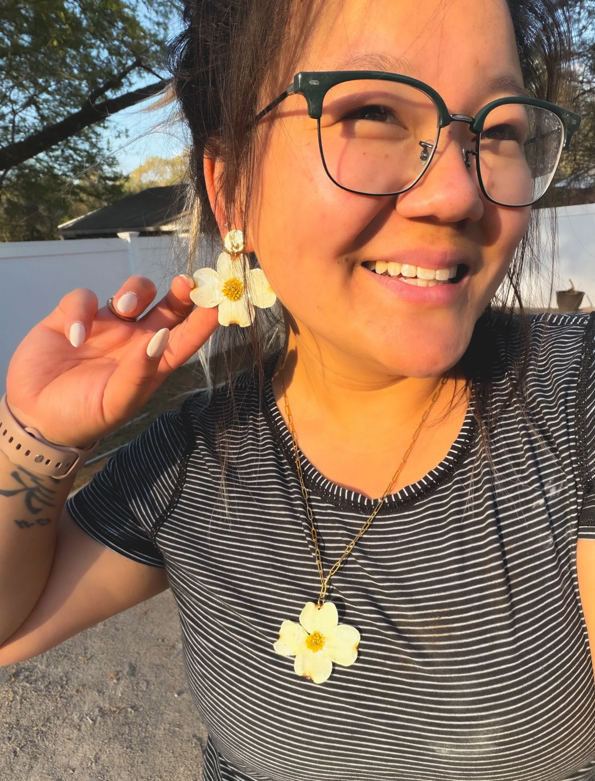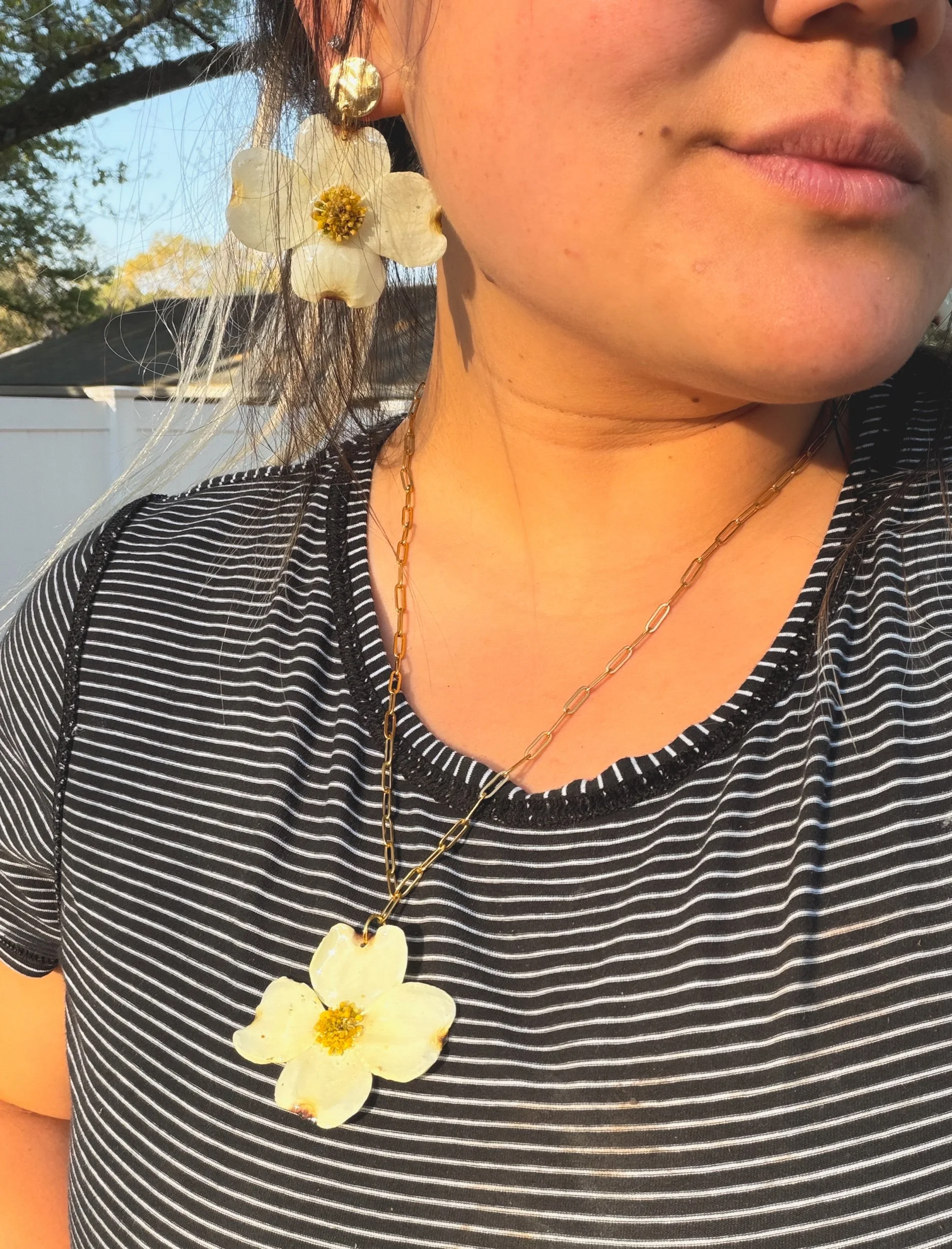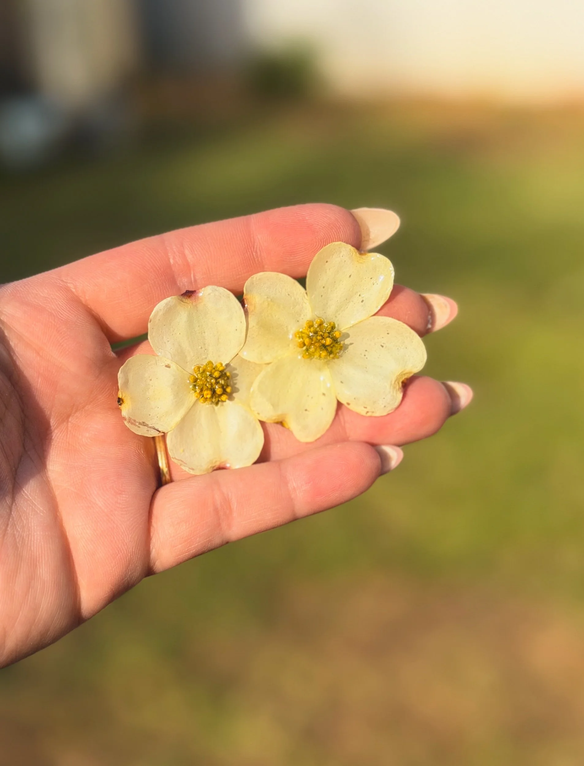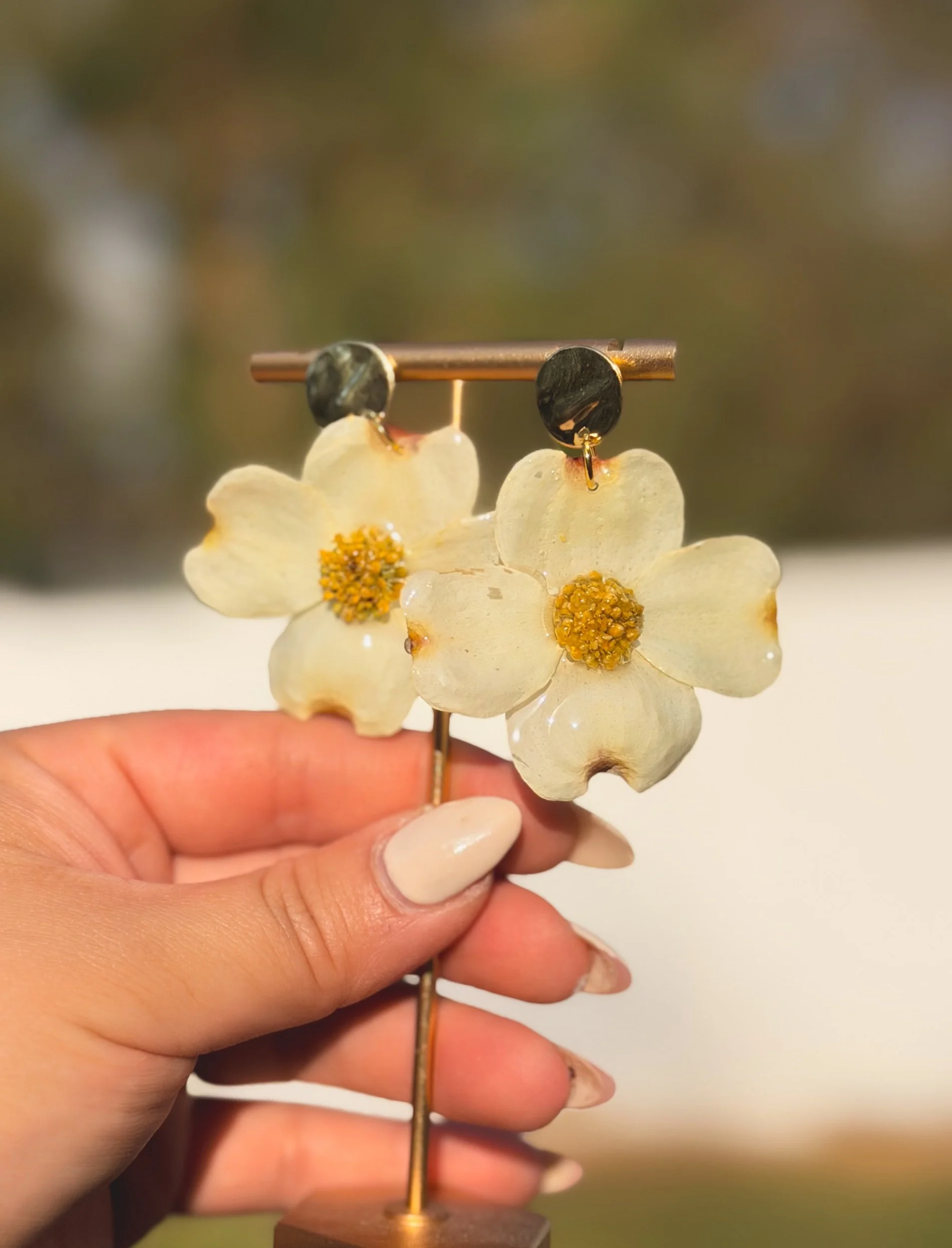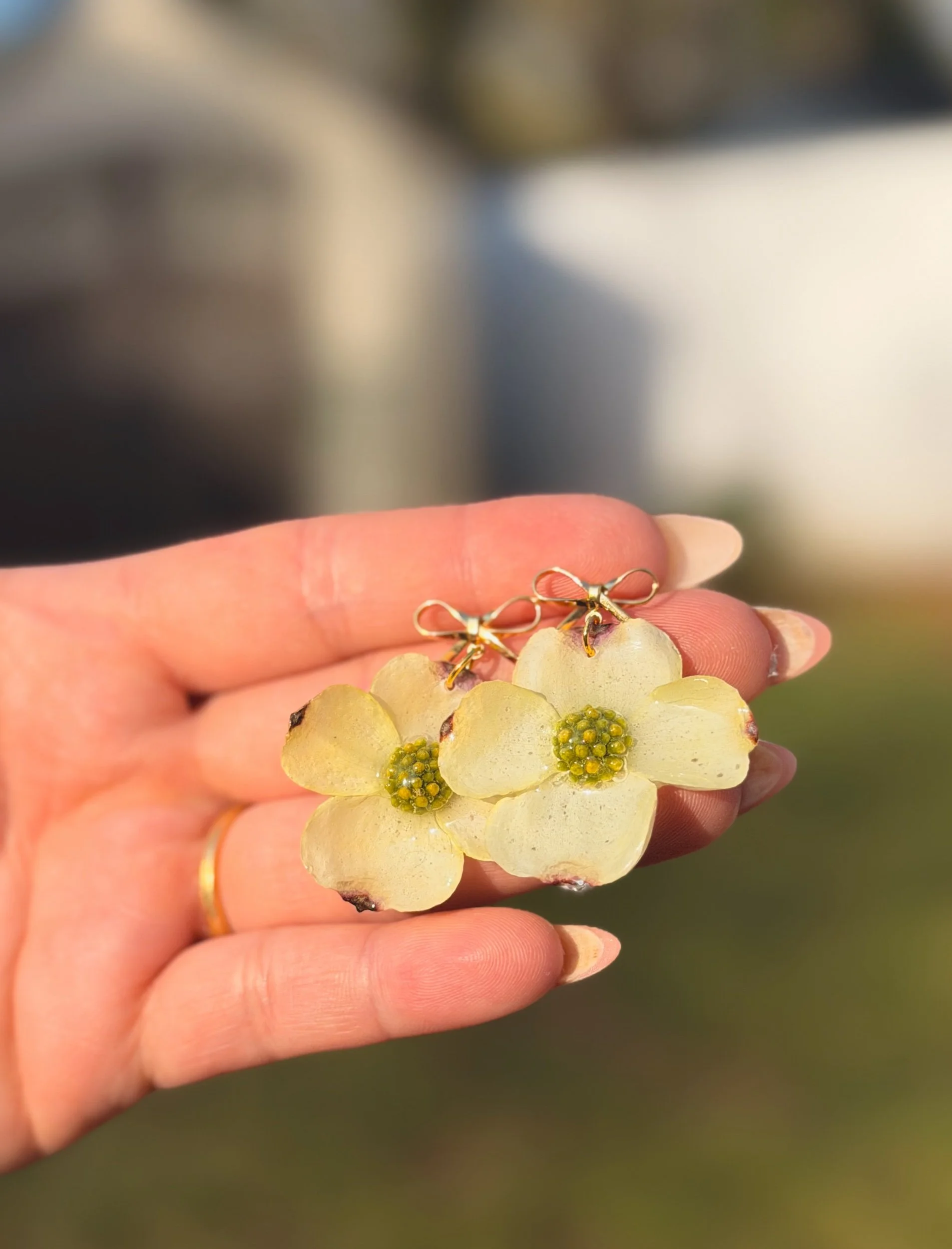 Bloom Shop › White Dogwood Earrings Image 1 of 5 Image 2 of 5 Image 3 of 5 Image 4 of 5 Image 5 of 5 White Dogwood Earrings from $30.00 Made with real dogwood flowers locally sourced from Winston Salem, North Carolina! Size: Select Size Small Medium Type: Select Type Stud Dangle Purchase Added! Made with real dogwood flowers locally sourced from Winston Salem, North Carolina!